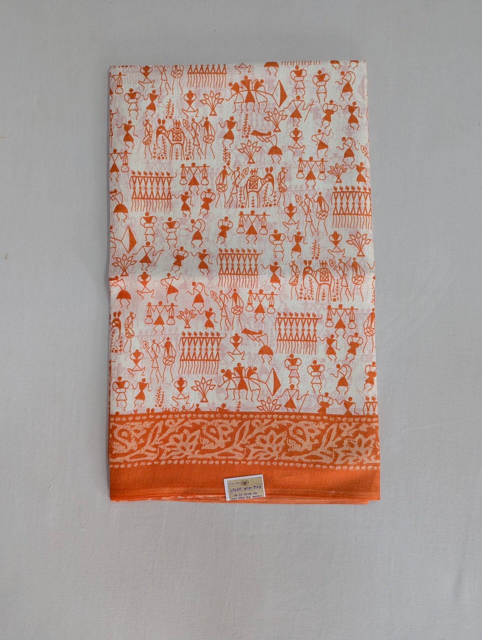 Styling Tips: Pair with a plain or patterned blouse and understated jewelry to let the folk art take center stage. Suitable for every age, this saree is a timeless favorite in every ethnic collection.