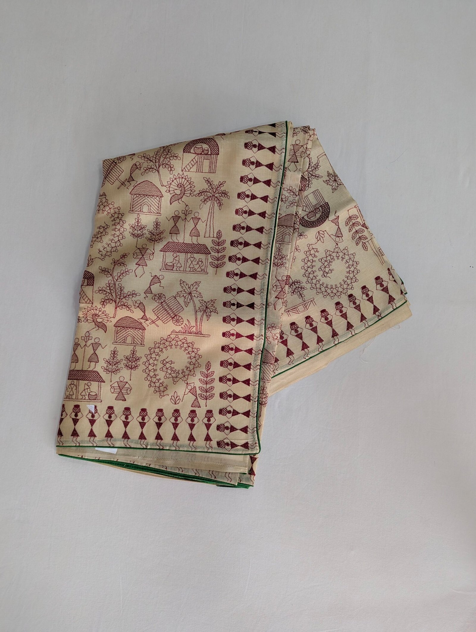 Artwork: Warli tribal motifs on body and pallu